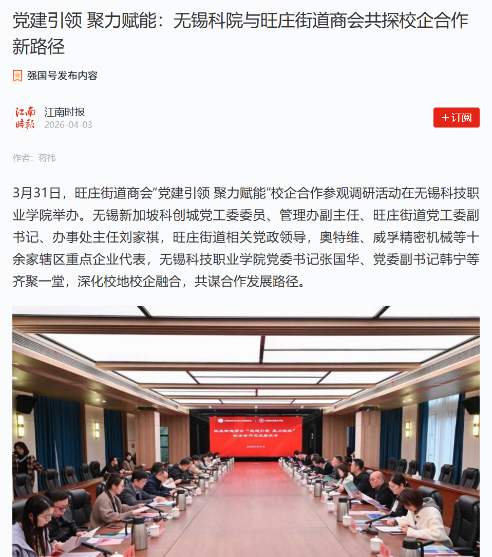 下一篇:学习强国:产教融合再升级!无锡科院与无锡先导智能共启合作新篇