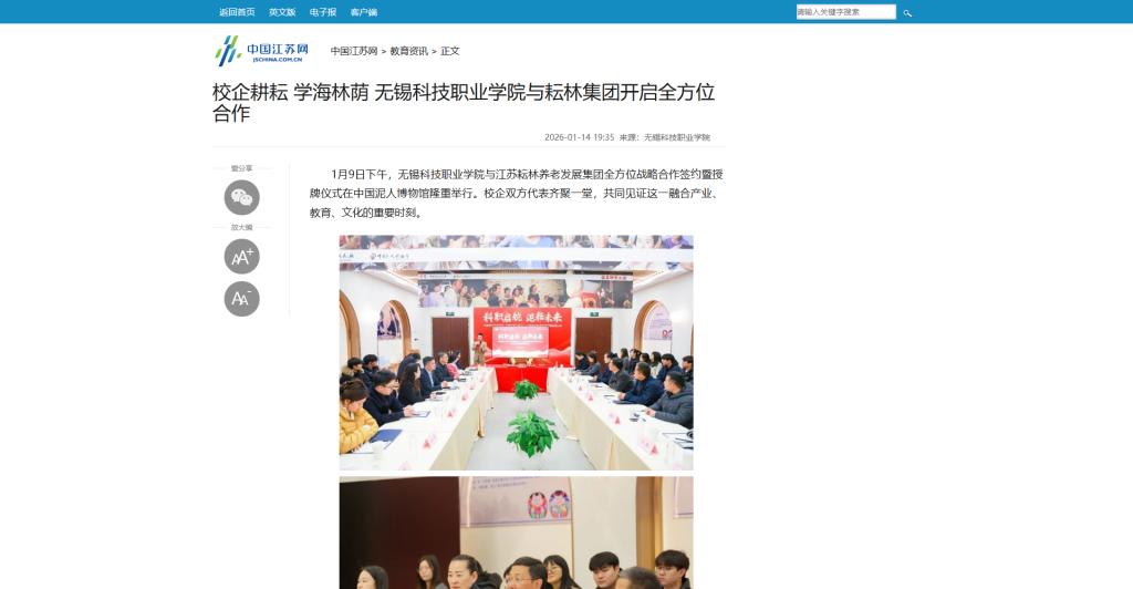 下一篇:新华报业网:校企耕耘 学海林荫 无锡科技职业学院与耘林集团开启全方位合作